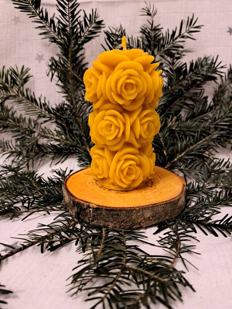 Es ist ein eher „einfacher“ Prozess im Gegensatz zum Honig. Es werden Altwaben, Wabenreste oder überschüssiges Wachs eingeschmolzen zu einem „Rohwachsblock“. Da dieser aber leider noch verunreinigt ist, muss dieser geklärt werden, um wirklich schöne hellgelbe bis orangefarbige Bienenwachskerzen herstellen zu können. Dieser wird danach wieder zerkleinert, eingeschmolzen und in Silikonformen gegossen.